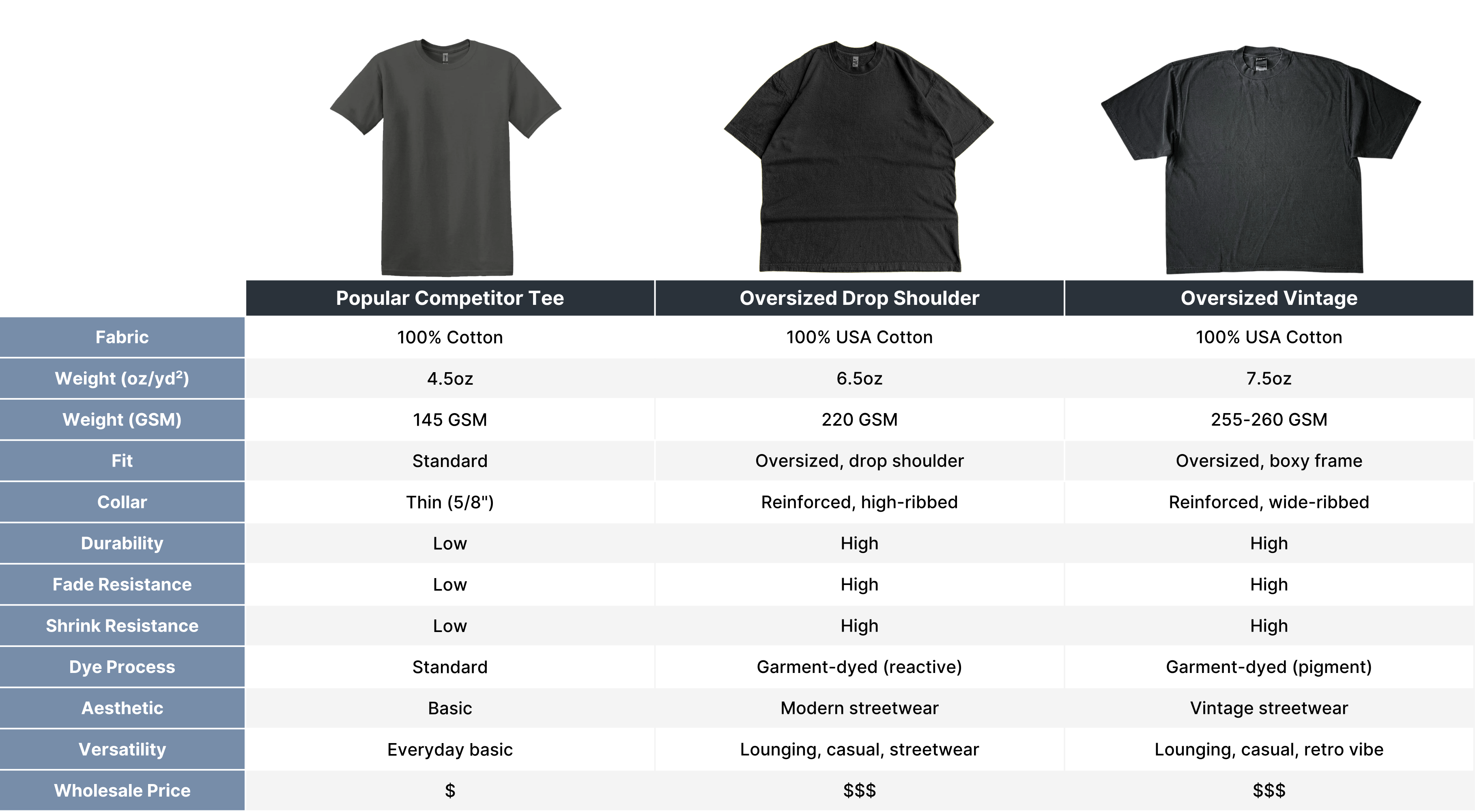 At SERNcollective, we’re all about quality and style. That’s why we use two premium tees: the Oversized Drop Shoulder for a modern streetwear vibe and the Oversized Vintage for that retro, laid-back feel. We intentionally pair each tee with designs that match its aesthetic, so you get the perfect combo of style and comfort. Both are made with heavyweight cotton, reinforced collars, and built to last—because you deserve better. Want to see how our shirts stack up? Check out the comparison below.